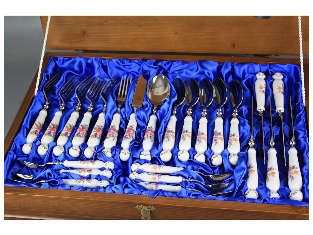 Luxusní 24dílná souprava porcelánových příborů ze silnostěnného tvrdého porcelánu.