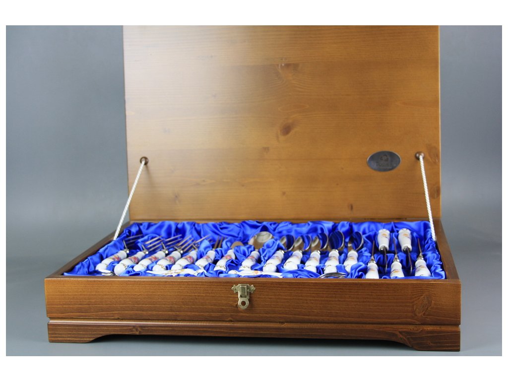 Souprava příborů s kazetou Bohemia 1987 Kytice s kosatcem 24dílná GL LUX