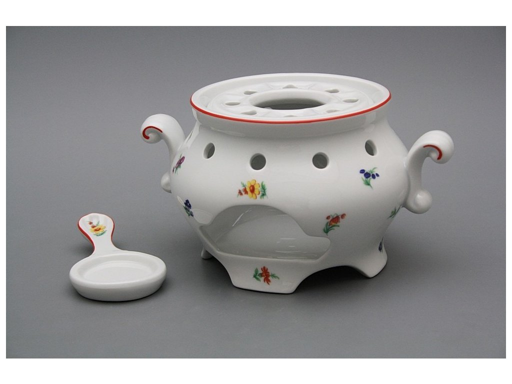 Praktisches Stövchen mit Porzellanschaufel, gefertigt aus böhmischem Markenporzellan von höchster Qualität.