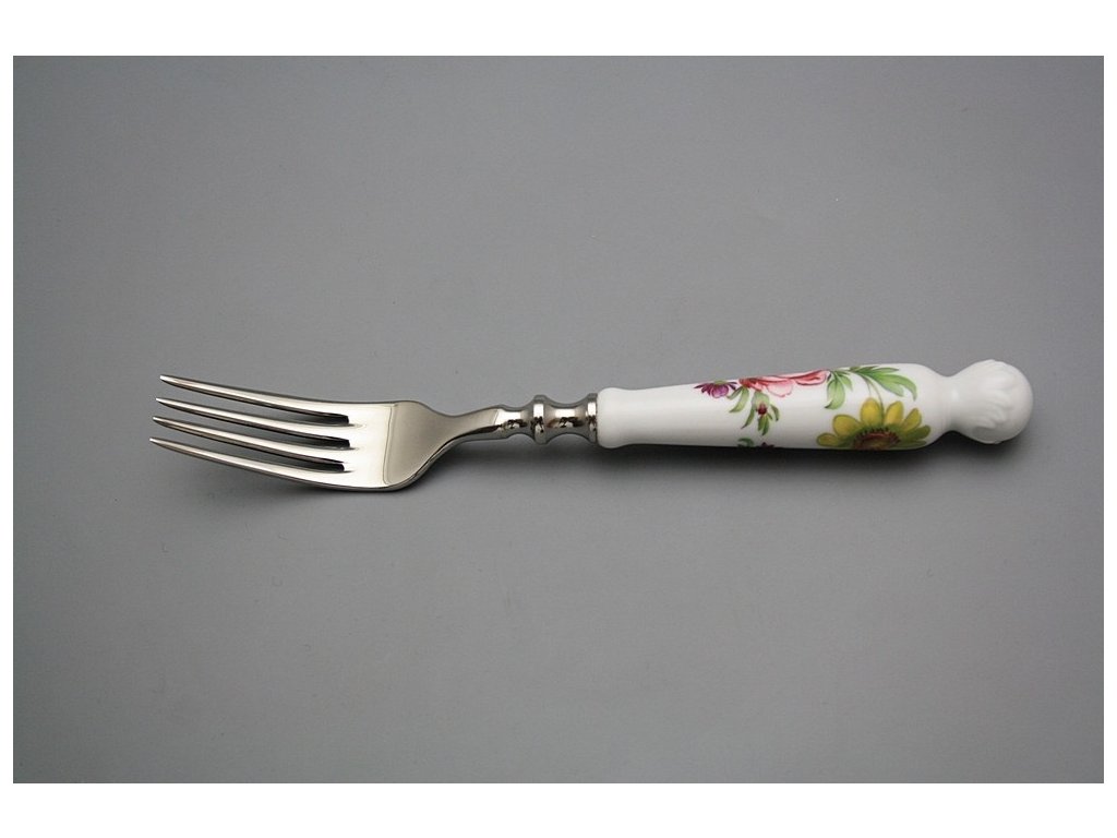 Luxuriöse Tafelgabel mit dem Porzellanhandgriff aus dem dickwandigen harten Porzellan.