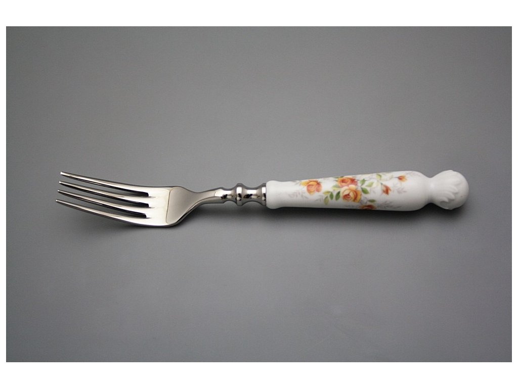 Luxuriöse Tafelgabel mit dem Porzellanhandgriff aus dem dickwandigen harten Porzellan.