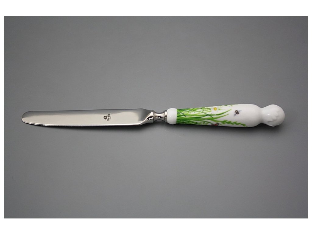 Luxuriöses Tafelmesser mit dem Porzellanhandgriff aus dem dickwandigen harten Porzellan.
