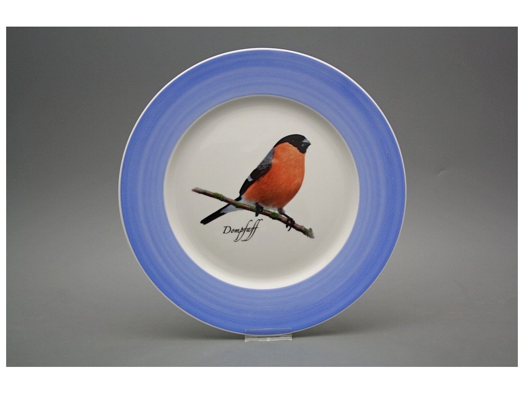 Luxusní praktický mělký talíř 25cm s vysokým podílem ruční práce z kvalitního českého porcelánu, ručně malovaný okraj (prapor) azurovou barvou (AP). VHODNÝ do myčky i mikrovlnné trouby.
