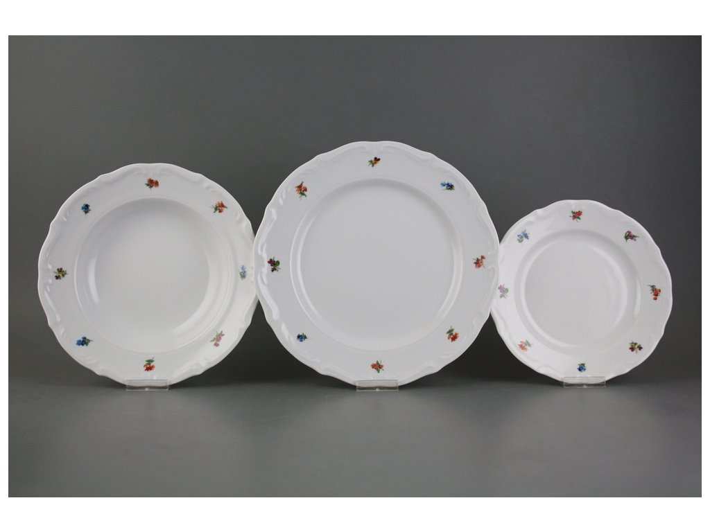 Luxusní 24dílná talířová souprava z kvalitního českého porcelánu, decentní jemný dekor v kombinaci s bohatým reliéfem. VHODNÁ do myčky i mikrovlnné trouby.