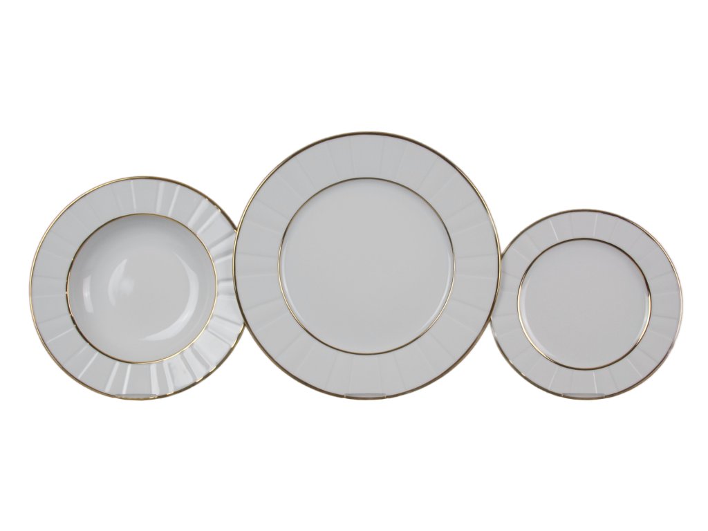 Luxusní 18dílná talířová souprava z kvalitního značkového porcelánu, bohatě zlacená, ruční dekorace lesklým zlatem. NEVHODNÁ do myčky i mikrovlnné trouby.