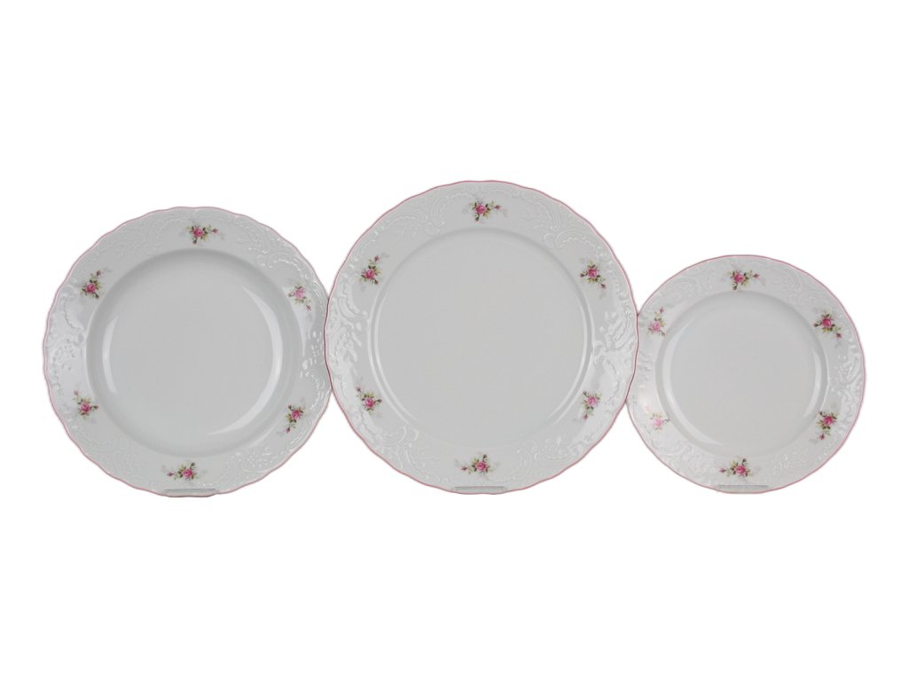 Luxusní praktická 36dílná talířová souprava z kvalitního českého porcelánu, růžový okraj (RL). VHODNÁ do myčky i mikrovlnné trouby.