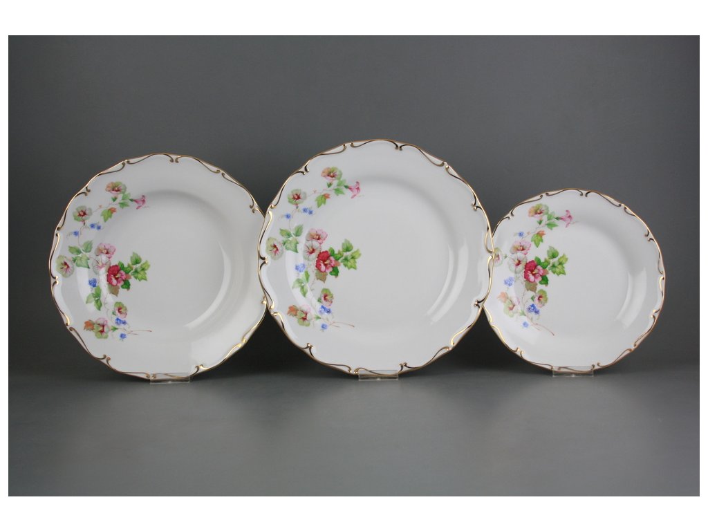 Luxusní 18dílná talířová souprava z kvalitního českého porcelánu, ruční dekorace lesklým zlatem (GL). Nevhodná do myčky i mikrovlnné trouby.