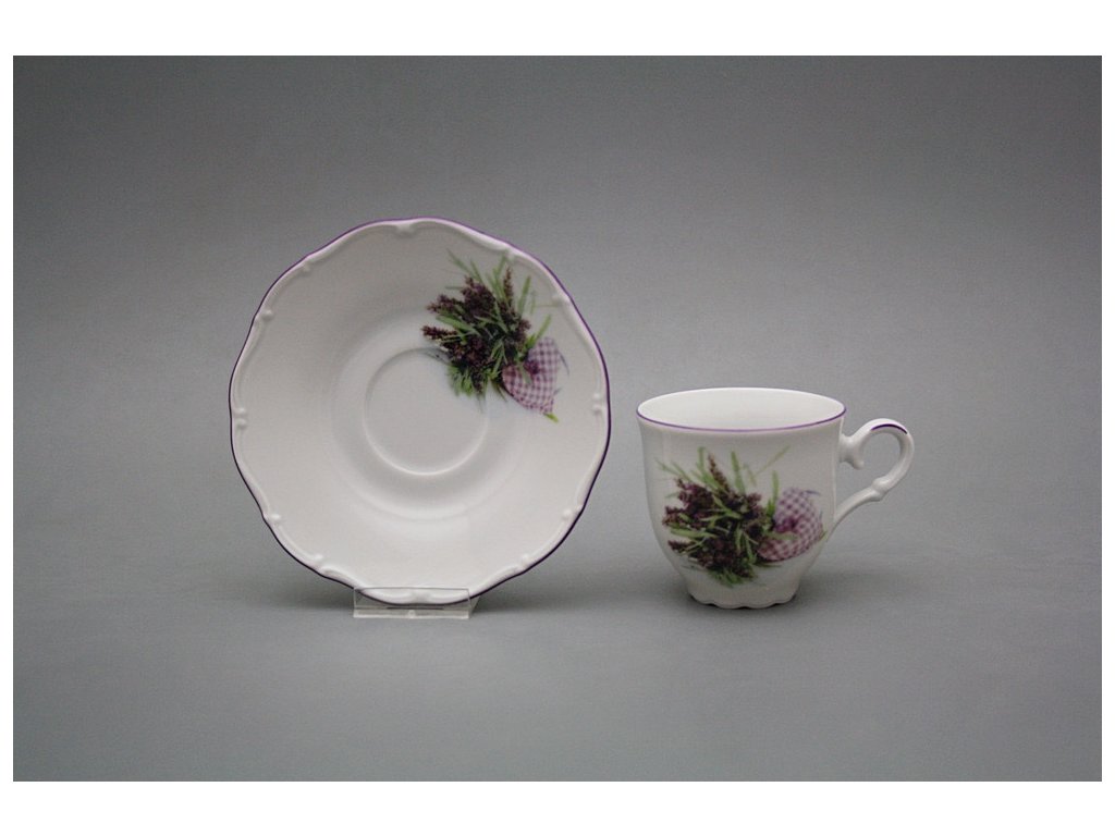 Praktische Tasse 0,135l und Untertasse, gefertigt aus böhmischem Markenporzellan von höchster Qualität.