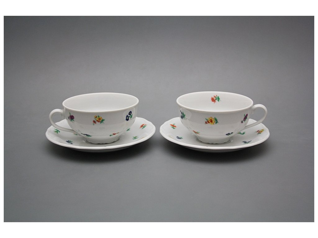 Praktische niedrige Tasse 0,18l und Untertasse 15cm, gefertigt aus böhmischem Markenporzellan von höchster Qualität.