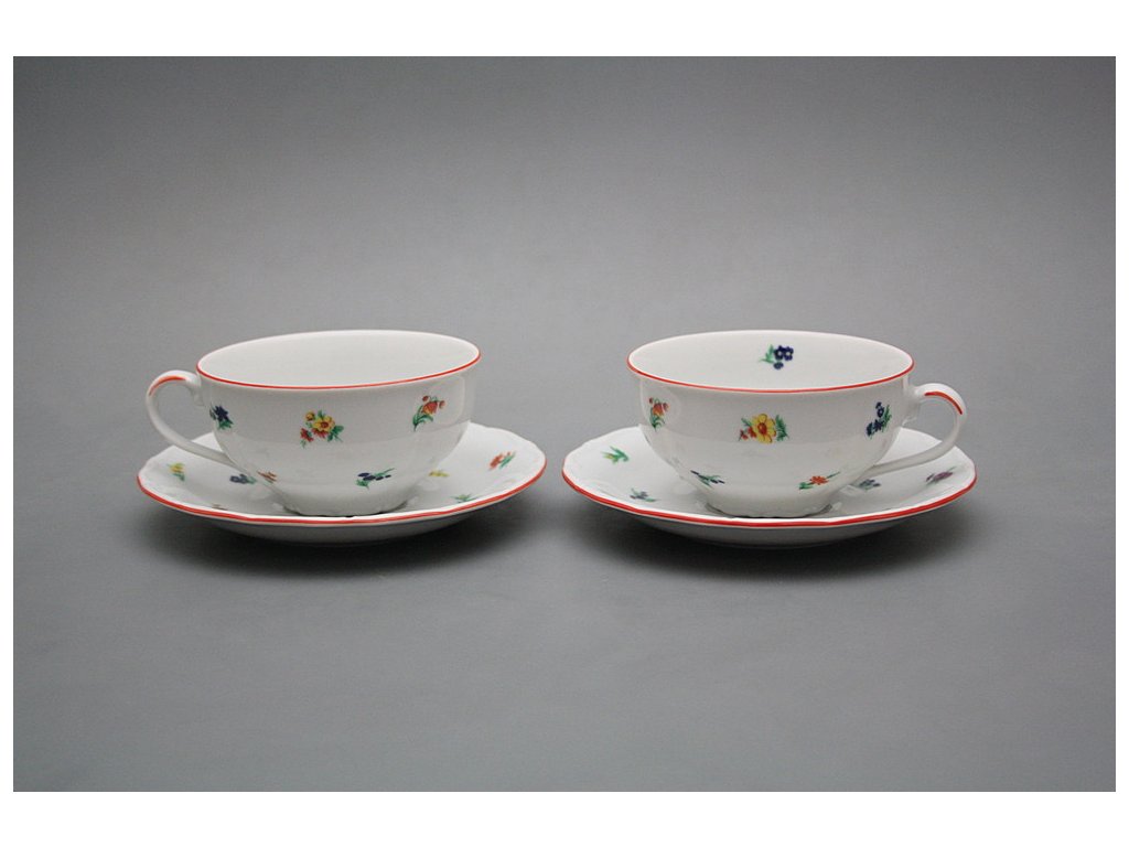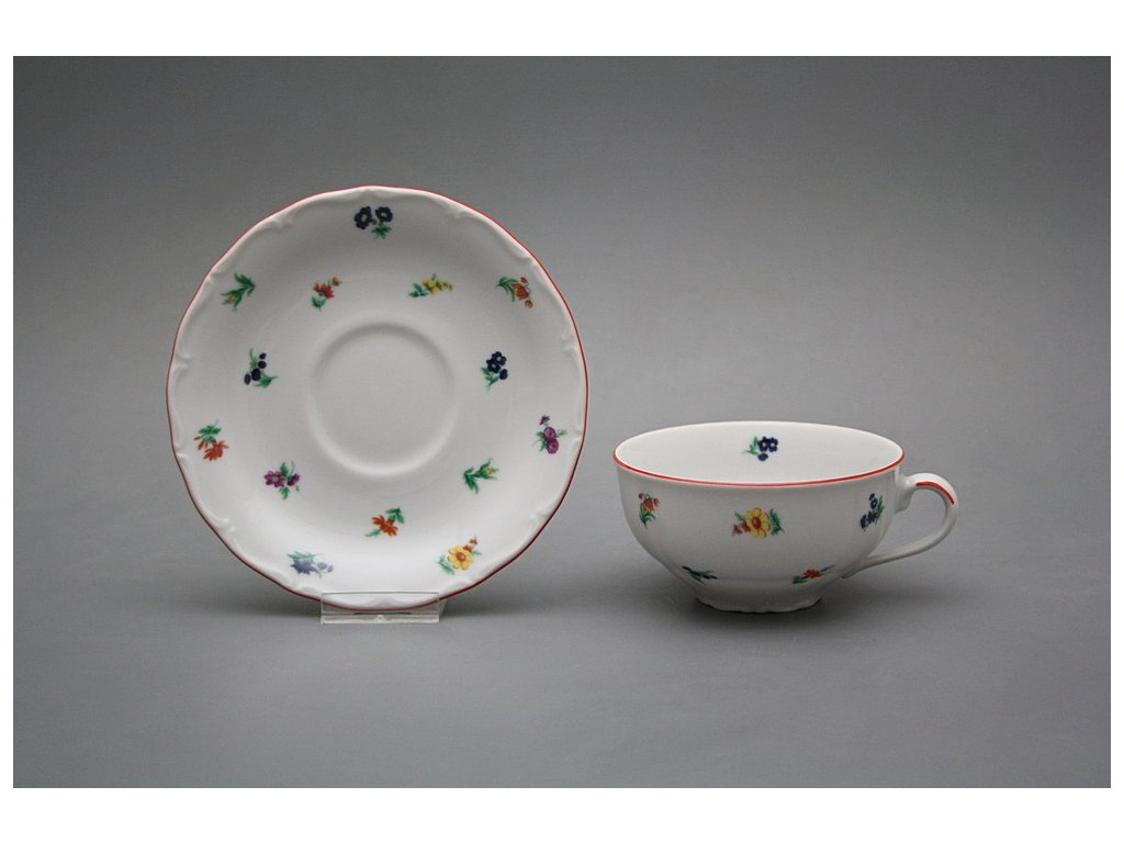 Praktische niedrige Tasse 0,18l und Untertasse 15cm, gefertigt aus böhmischem Markenporzellan von höchster Qualität.