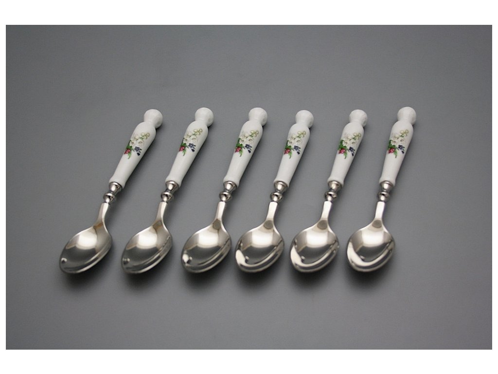 Luxuriöses 6teiliges Teelöffelset mit dem Porzellanhandgriff aus dem dickwandigen harten Porzellan.