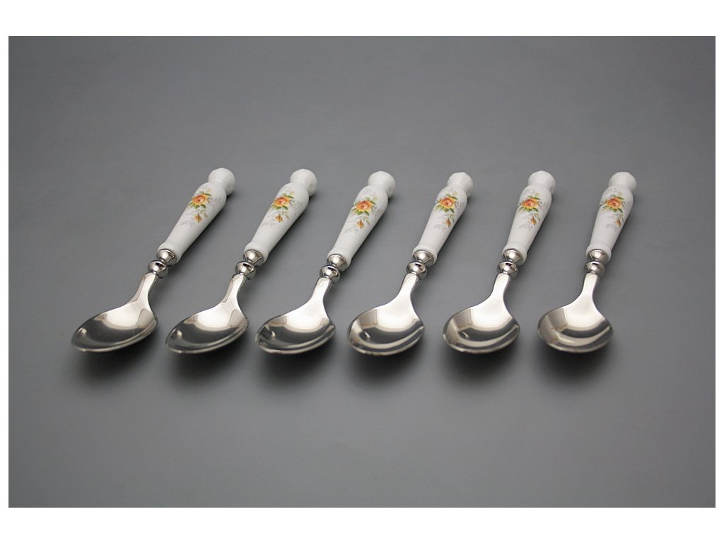 Luxuriöses 6teiliges Teelöffelset mit dem Porzellanhandgriff aus dem dickwandigen harten Porzellan.
