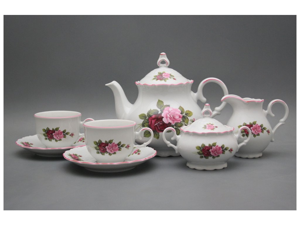 Praktisches 15teiliges Teeset, gefertigt aus böhmischem Markenporzellan von höchster Qualität.