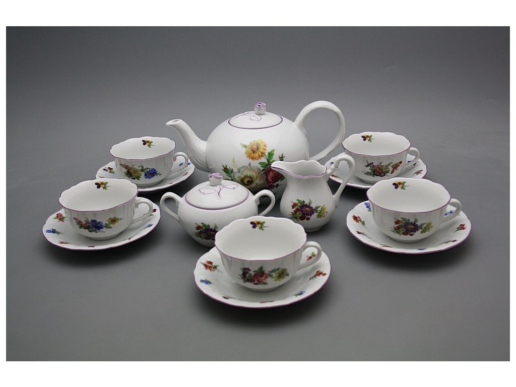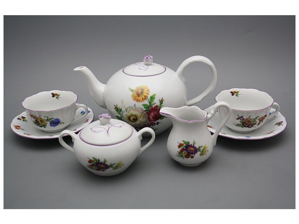Praktisches 15teiliges Teeset, gefertigt aus böhmischem Markenporzellan von höchster Qualität.