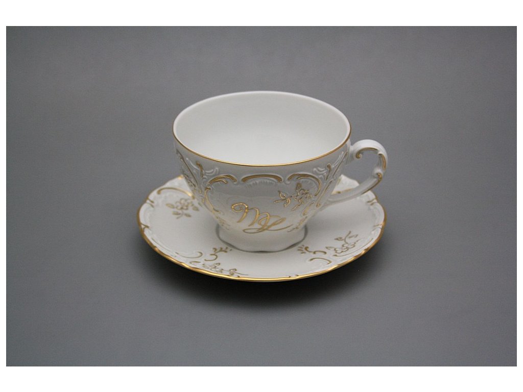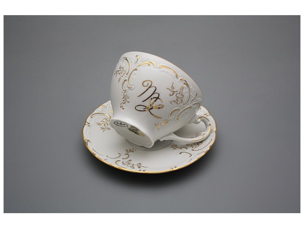 Luxuriöse Teetasse 0,17l und Untertasse mit einem Monogramm, gefertigt aus böhmischem Markenporzellan von höchster Qualität.