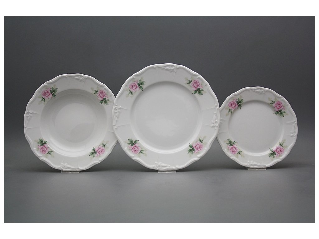 Luxuriöses 18teiliges Tellerset, gefertigt aus böhmischem Markenporzellan von höchster Qualität.