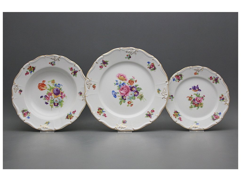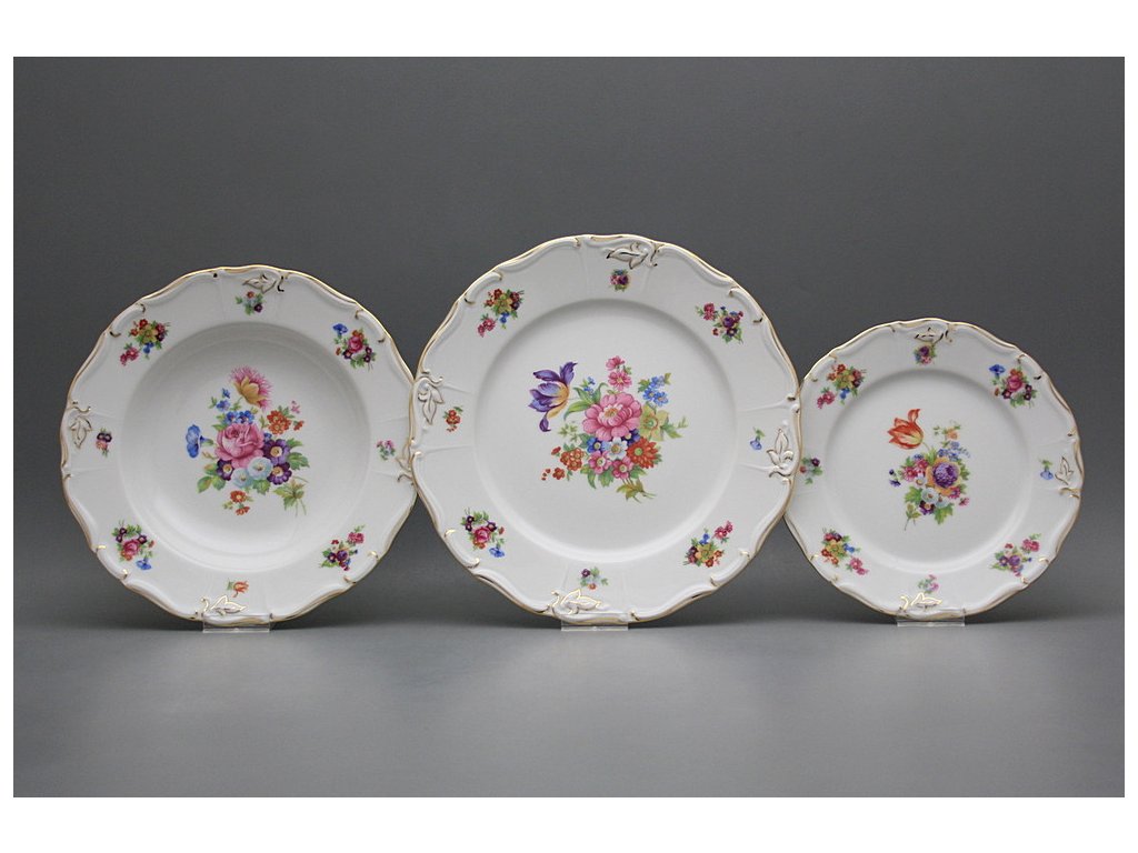 Luxuriöses 18teiliges Tellerset, gefertigt aus böhmischem Markenporzellan von höchster Qualität. Spülmaschinenfest und mikrowellentauglich, NEIN!!!