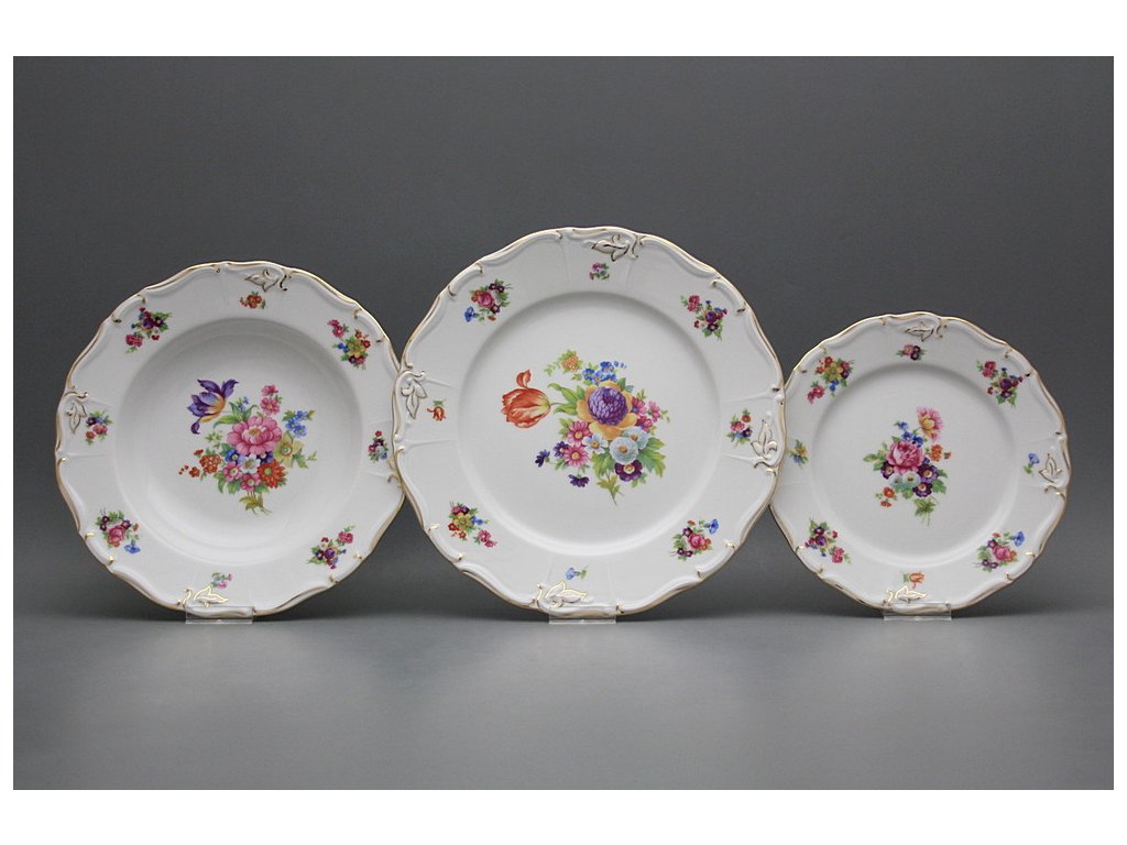 Luxuriöses 24teiliges Tellerset, gefertigt aus böhmischem Markenporzellan von höchster Qualität. Spülmaschinenfest und mikrowellentauglich, NEIN!!!