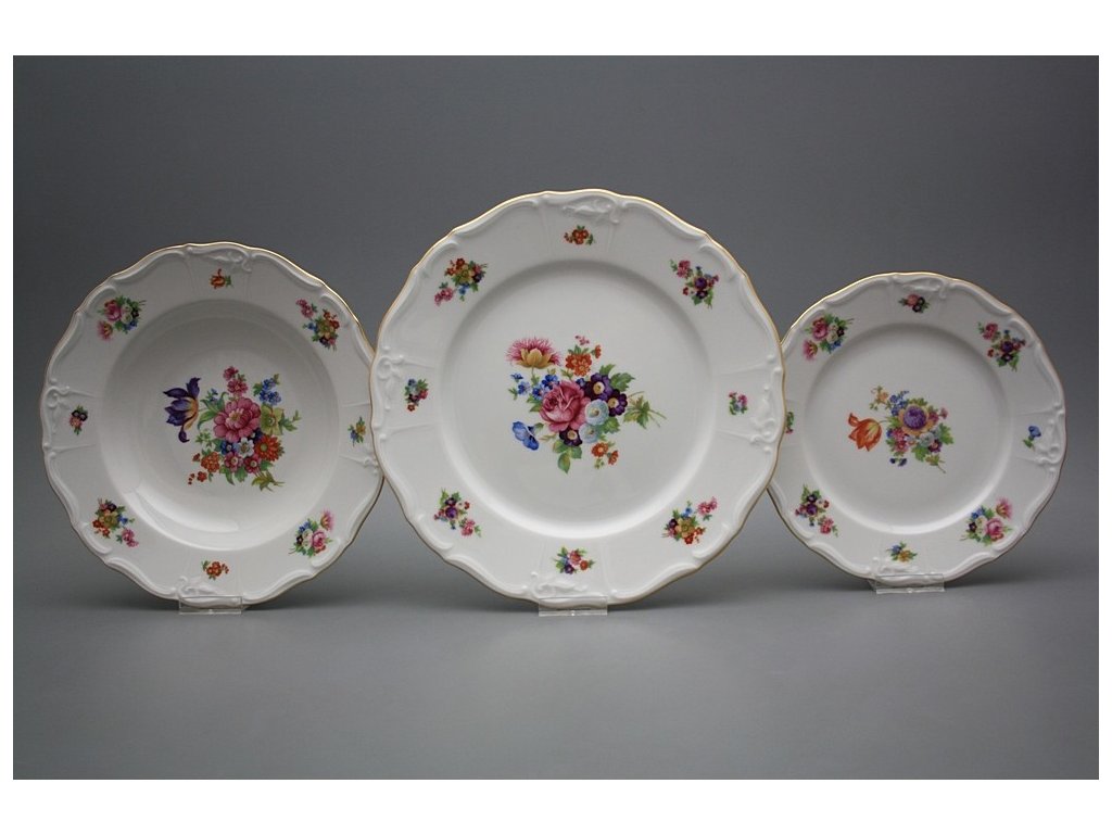 Luxuriöses 36teiliges Tellerset, gefertigt aus böhmischem Markenporzellan von höchster Qualität. Spülmaschinenfest und mikrowellentauglich, NEIN!!!