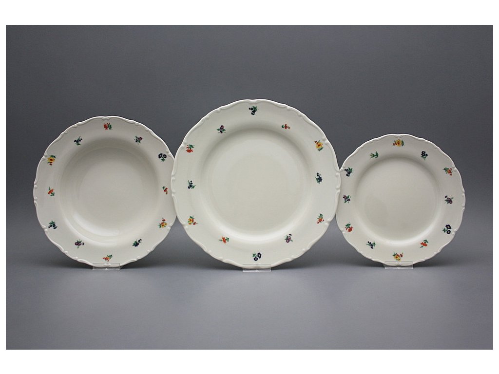 Praktisches 18teiliges Tellerset, gefertigt aus böhmischem Markenporzellan von höchster Qualität. Spülmaschinenfest und mikrowellentauglich, JA!!!