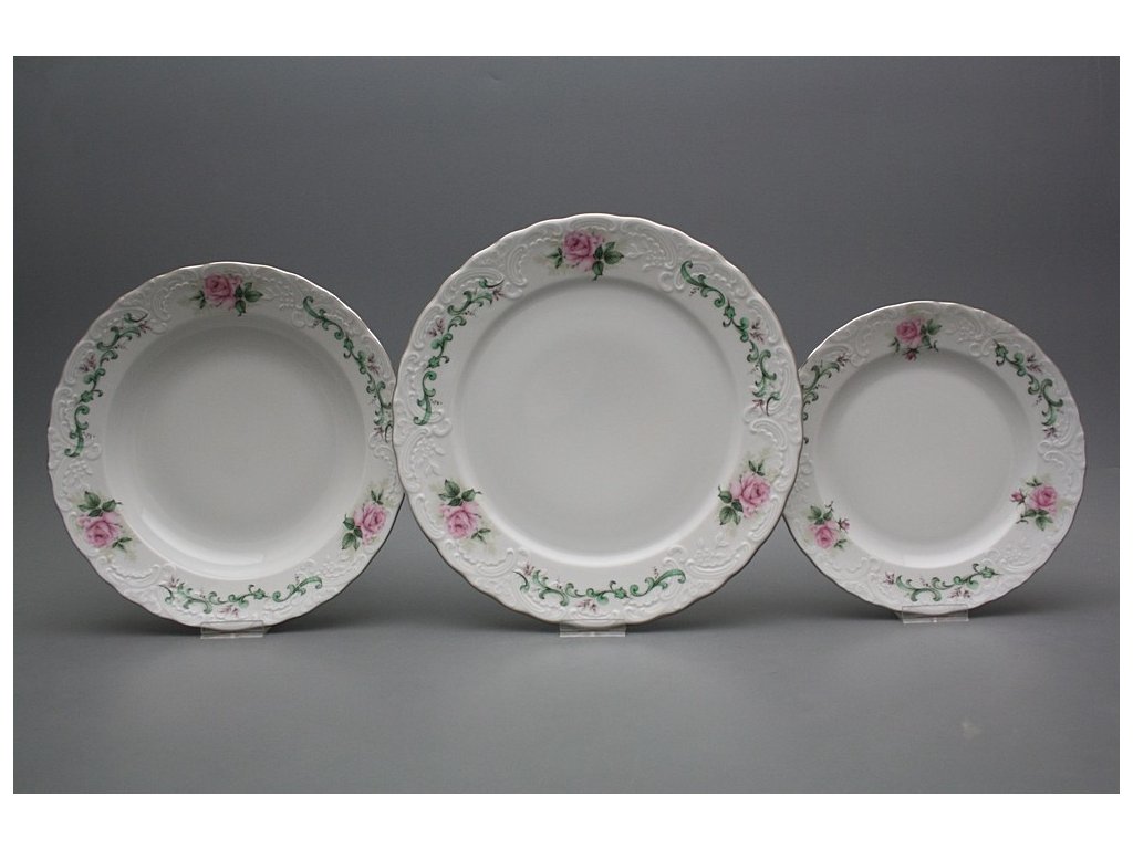 Luxuriöses 36teiliges Tellerset, gefertigt aus böhmischem Markenporzellan von höchster Qualität. Spülmaschinenfest und mikrowellentauglich, NEIN!!!