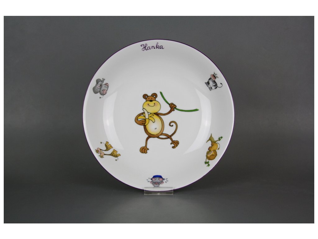 Ein origineller Kinderteller (22cm) aus hochwertigem tschechischem Porzellan mit dem handgeschriebenen Namen des Kindes. Dieser Teller ist sowohl für die Spülmaschine als auch für die Mikrowelle geeignet.