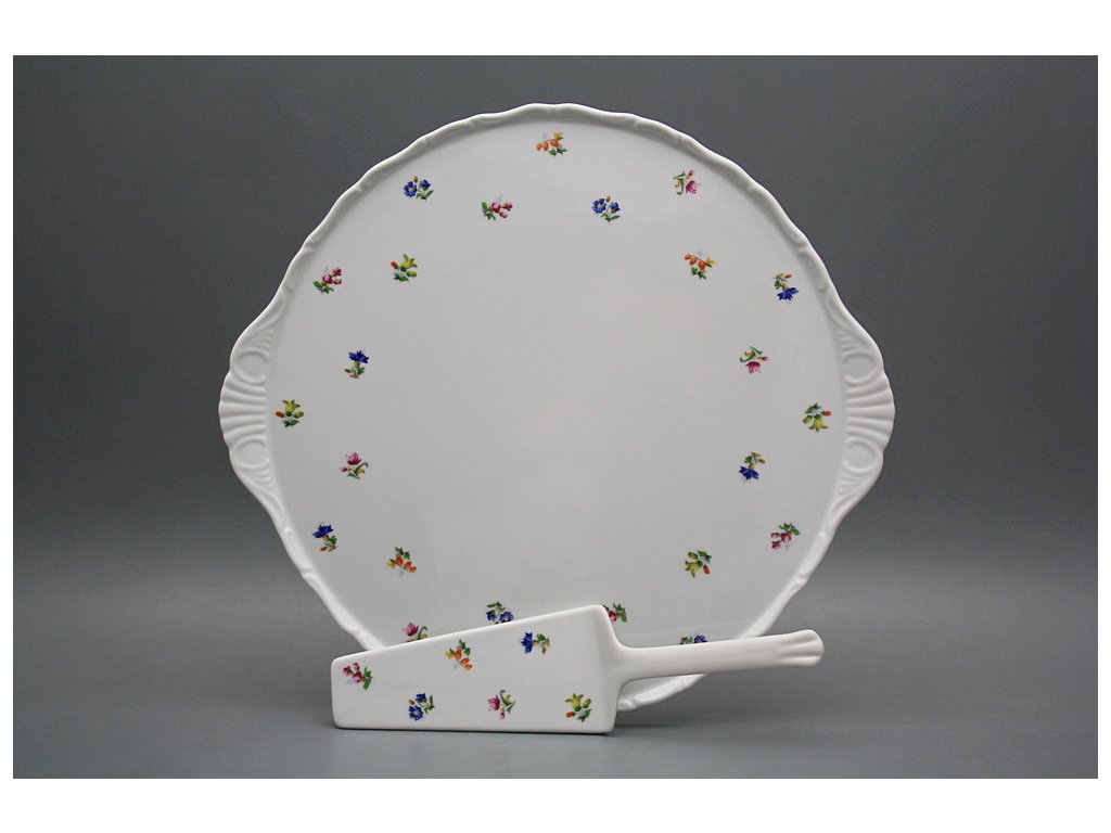 Praktisches torten Teller 30,5cm mit Porzellanschaufel, gefertigt aus böhmischem Markenporzellan von höchster Qualität. Spülmaschinenfest und mikrowellentauglich, JA!!!