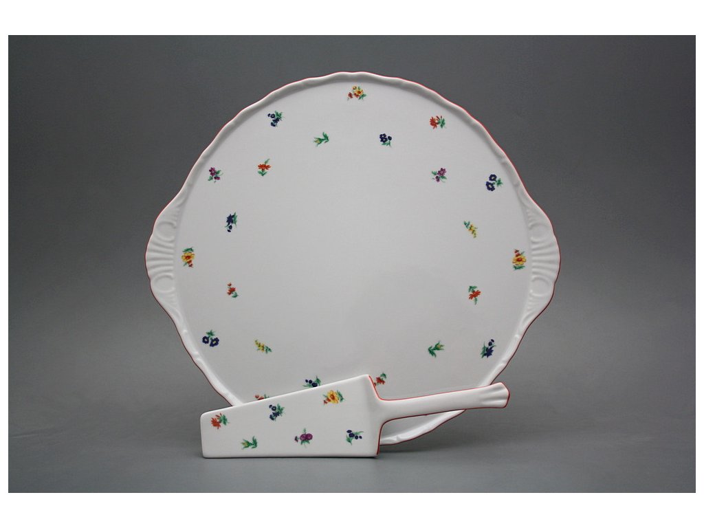 Praktisches torten Teller 30,5cm mit Porzellanschaufel, gefertigt aus böhmischem Markenporzellan von höchster Qualität.