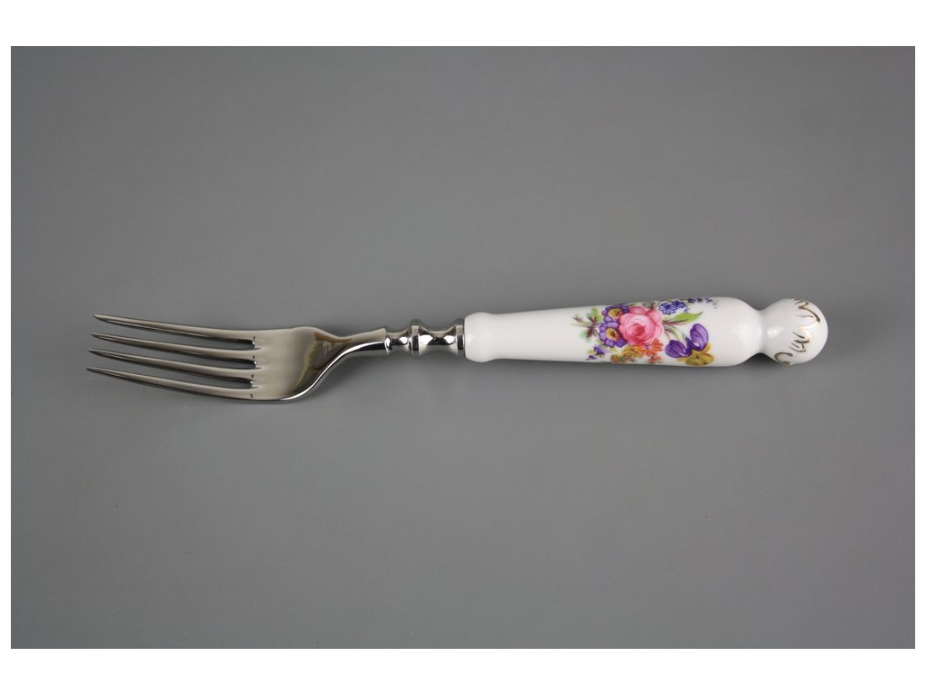 Luxusní jídelní vidlička s porcelánovou rukojetí ze silnostěnného tvrdého porcelánu.