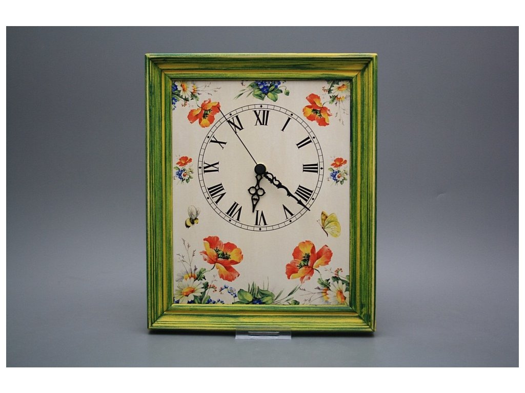 Keramische Wanduhr 25x30cm mit Holzrahmen, Temperatur beim Ausbrennen des Motivs in Höhe von 820°C, abriebfestes, waschbares Dekor. Quartz-Uhrwerk (2 Jahre Garantie). Batterien im Lieferumfang enthalten.