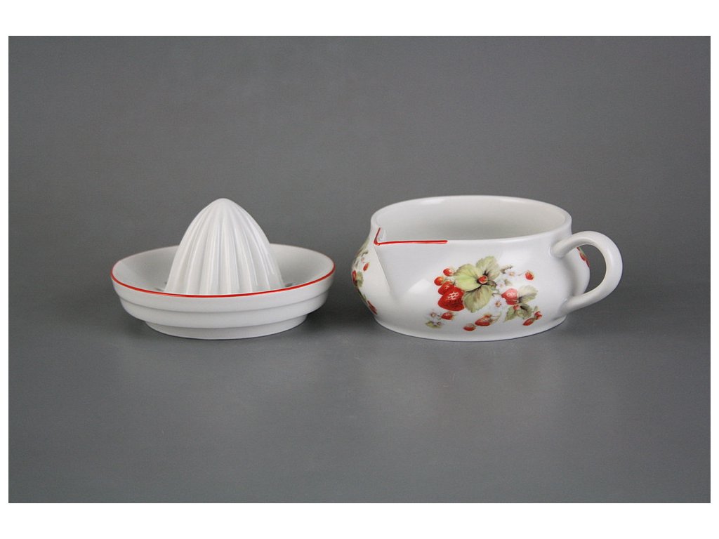 Praktischer 2teilig Zitronenpresser, gefertigt aus böhmischem Markenporzellan von höchster Qualität. Spülmaschinenfest und mikrowellentauglich, JA!!!