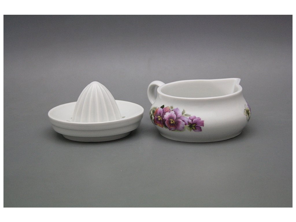 Praktischer 2teilig Zitronenpresser, gefertigt aus böhmischem Markenporzellan von höchster Qualität. Spülmaschinenfest und mikrowellentauglich, JA!!!