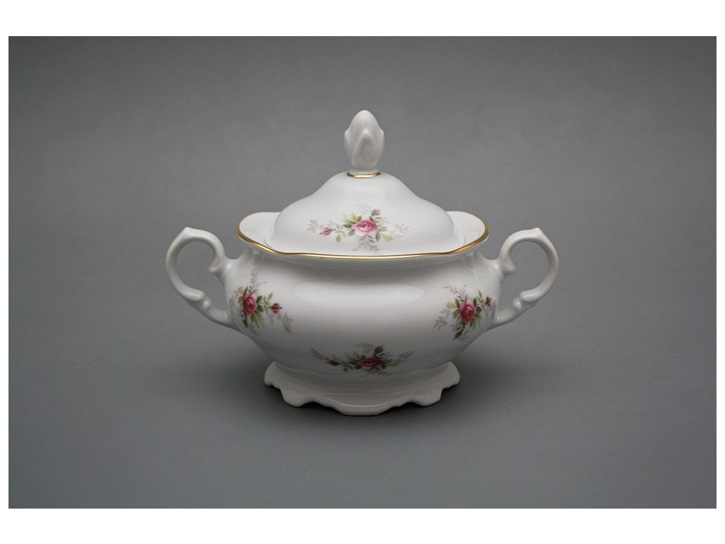 Luxuriöse Zuckerdose 0,25l, gefertigt aus böhmischem Markenporzellan von höchster Qualität. Spülmaschinenfest und mikrowellentauglich, NEIN!!!