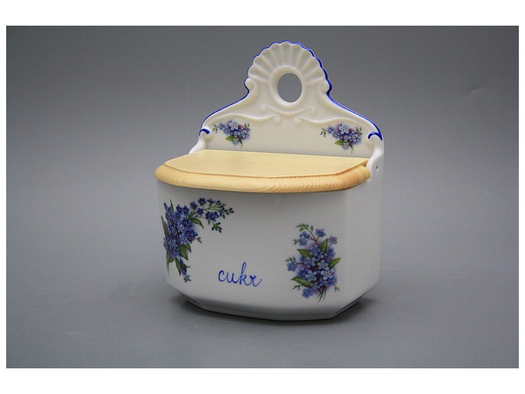 Praktische Zuckerdose mit Holzdeckel zum Aufhängen, gefertigt aus böhmischem Markenporzellan von höchster Qualität.
